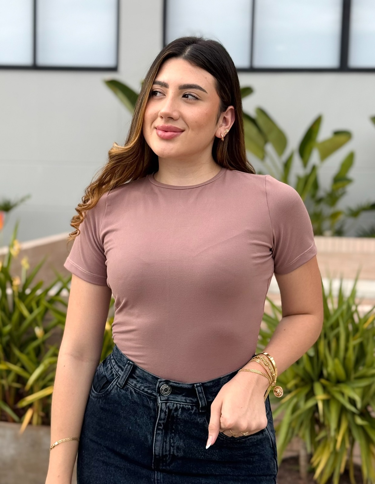 El neutro que marca diferencia. La Básica Café Claro es ideal para quienes aman los tonos tierra y buscan una alternativa cálida a los básicos tradicionales. Su diseño de manga corta, corte cómodo y tonalidad suave la convierten en una prenda versátil y sofisticada, perfecta para looks naturales y elegantes.