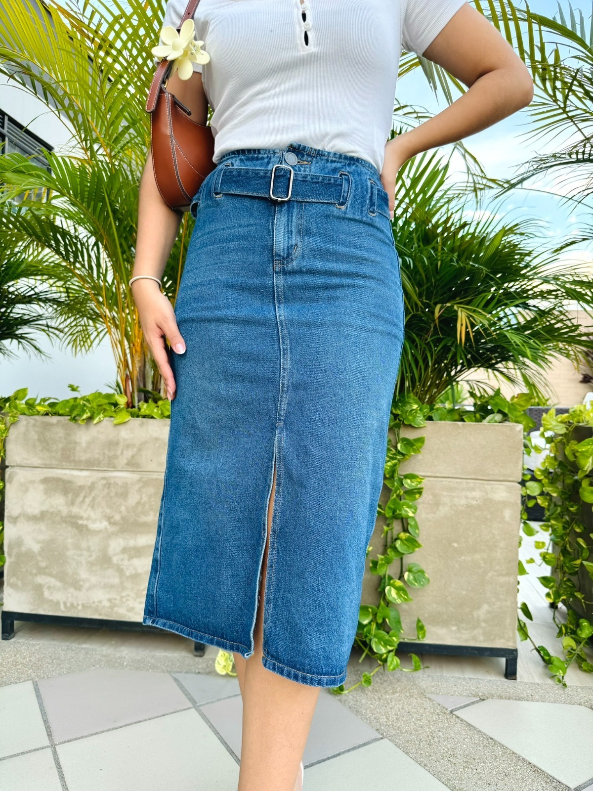 Sé el primero en valorar “Falda Denim con Cinturón y Abertura”