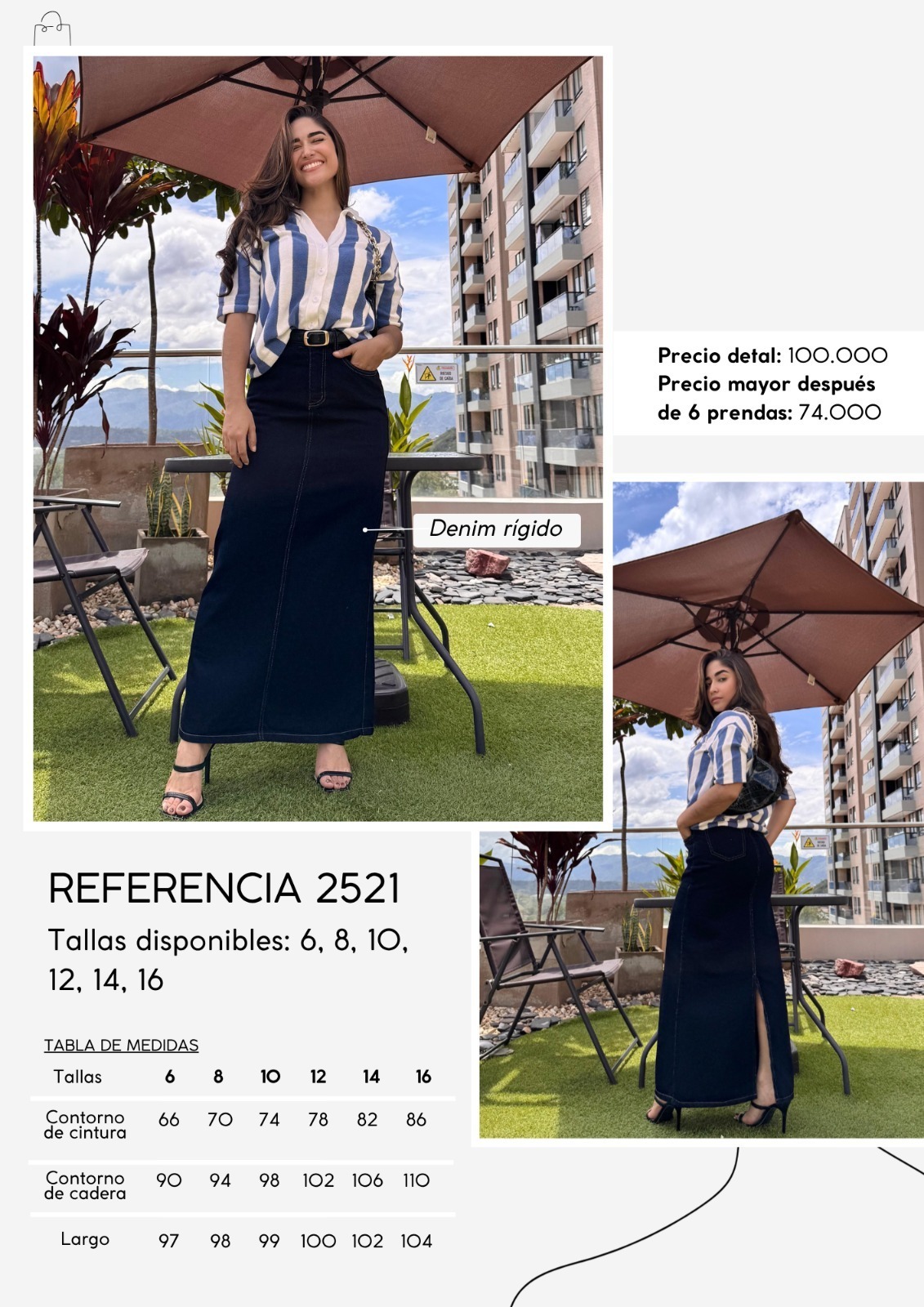 Una pieza atemporal que combina elegancia y comodidad. La Falda Maxi Denim Azul Oscuro destaca por su silueta larga y estilizada, perfecta para crear looks sofisticados y casuales. Con costuras visibles que realzan su forma y un diseño de talle alto con bolsillos funcionales, es ideal para combinar con blusas ligeras o suéteres. Su tono profundo aporta un toque moderno y versátil que no pasa de moda.